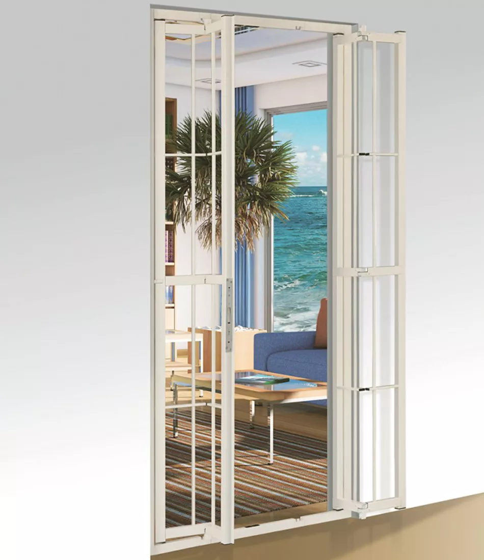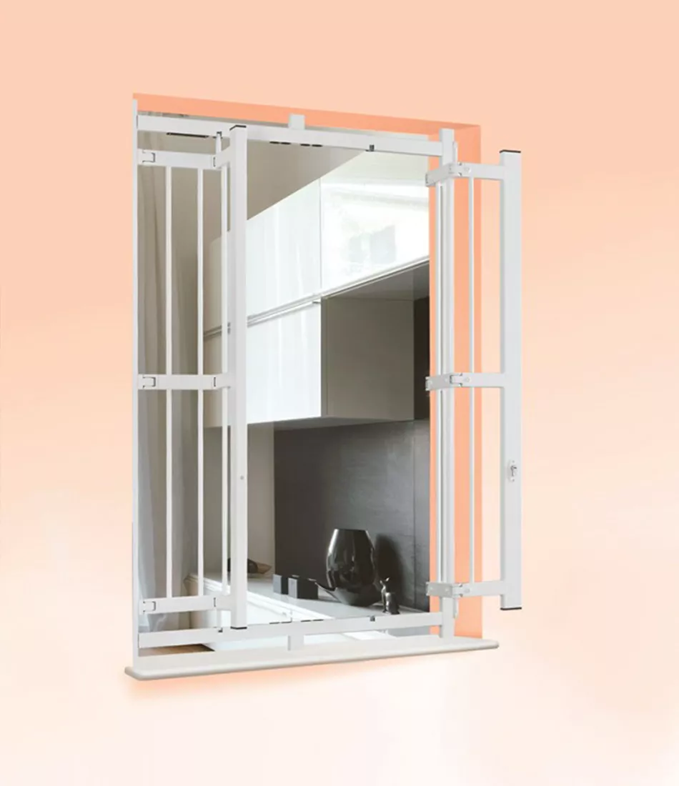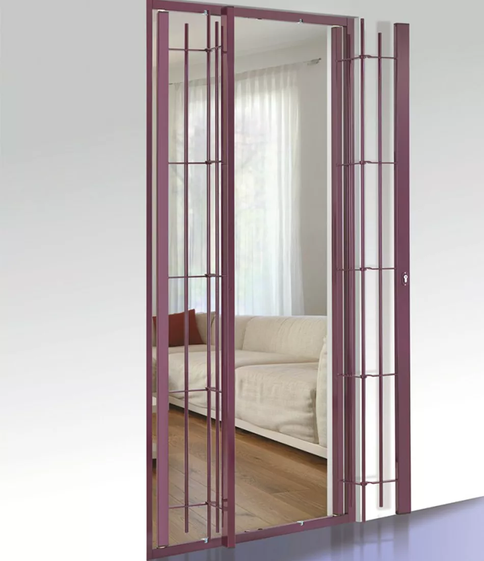 Sicurezza. funzionalità. estetica e facilità di montaggio: sono questi i quattro pilastri su cui si fonda la linea Multipla. Le grate sono progettate con battente integrato al telaio. dotate di 3 o 4 cerniere in base al tipo di apertura. e serrature indipendenti per ogni anta. La certificazione antintrusione in Classe 3 ne garantisce la solidità. Grazie agli snodi speciali. l’apertura è totale sia verso l’interno che verso l’esterno. agevolando l’uso quotidiano e la pulizia del serramento. Il design è snello e pulito: nessun doppio telaio a vista. viti nascoste. e profili essenziali per un risultato più elegante e sicuro. Pensata anche per semplificare la posa. la linea Multipla si installa facilmente senza rimuovere le ante esistenti. grazie ai compensatori telescopici e a uno spessore ridotto in mazzetta di soli 34 mm.