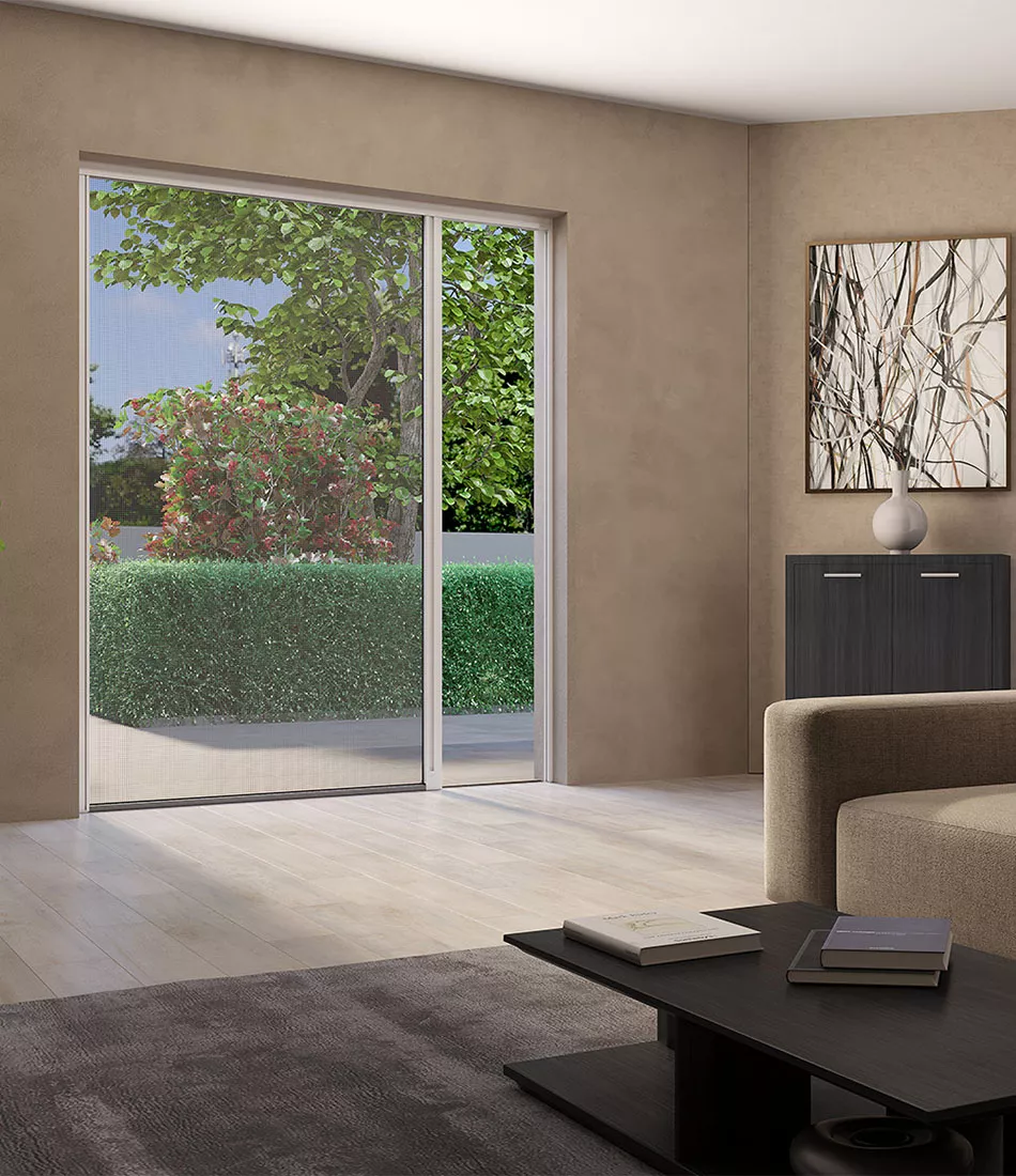 Design: linee essenziali, ingombri ridotti e meccanismi discreti. Le zanzariere si integrano con armonia in ogni ambiente, valorizzando lo stile dell’infisso e contribuendo alla pulizia visiva dello spazio. Le versioni con rete plissettata o a scorrimento offrono un’estetica moderna e funzionale anche in presenza di grandi aperture.