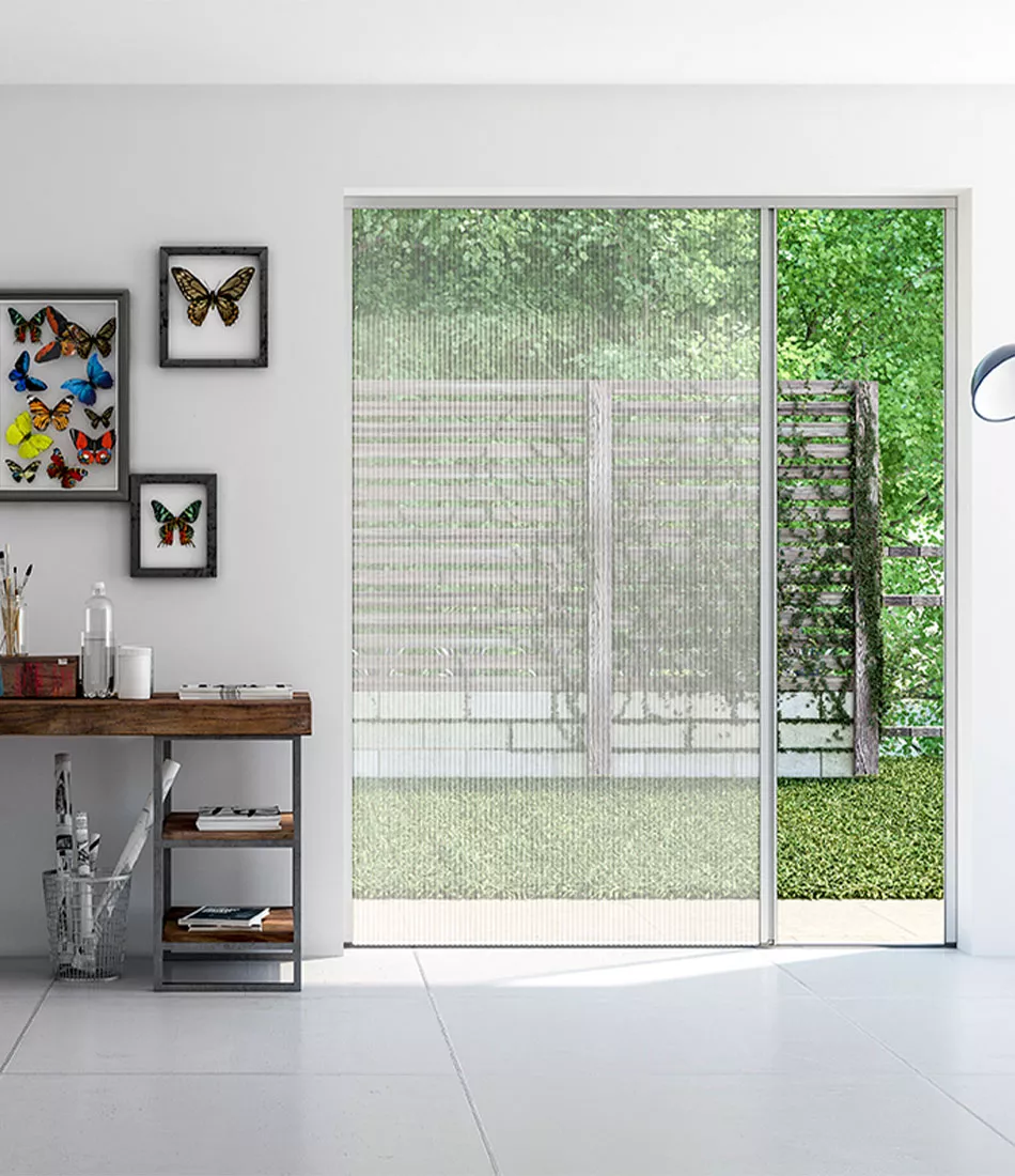Personalizzazione: ogni modello può essere configurato scegliendo tra diverse modalità di apertura – laterale o verticale – e sistemi di chiusura, come magnete, maniglietta o catenella. Oltre alla classica rete anti-insetto, sono disponibili teli oscuranti o filtranti, ideali per modulare la luce e aumentare il benessere negli ambienti interni.